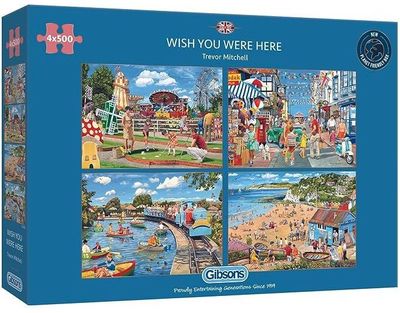 Gibsons 4 x 500 Piece jigsaw Puzzles Wish You Were Here