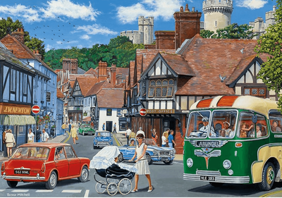 - Take a trip down memory lane with this charming puzzle set! Begin your day at the local filling station, journey through town, and explore Arundel’s medieval castle with the kids. Enjoy a sunny picnic in the park - Sandy the dog included! These nostalgic scenes by Trevor Mitchell capture the warmth of traditional family outings, making this puzzle a heartwarming escape for adults and families alike.