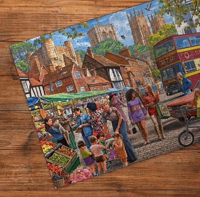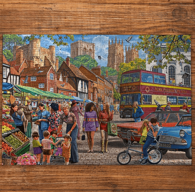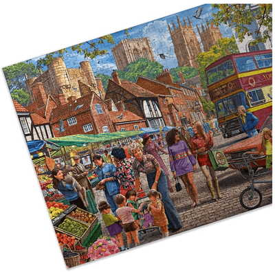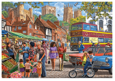 - York Market: The York Pullman City bus Tour pulls into the city centre ready to take in the sights of York Minster and Shambles Market, followed by a spot of retail therapy at 70s House York Shop. This 250XL piece puzzle is painted by the talented artist Steve Crisp.