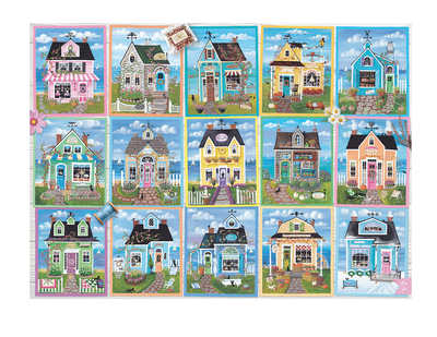 - Get ready for more cottage fun with Seaside Shops, the charming sequel to Seaside Cottages by Kim Leo! This 1000 piece puzzle is a burst of colour and whimsy, filled with playful details and hidden gems—from quirky weather vanes to curious pets peeking into shop windows.