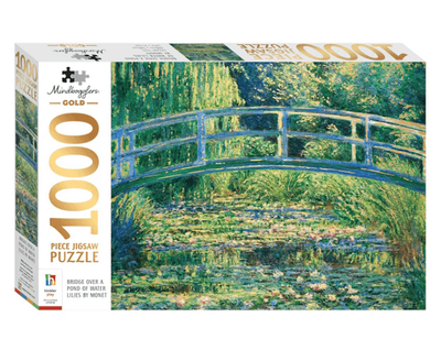 Hinkler Mindbogglers Gold 1000 Piece Jigsaw Puzzle Bridge Over a Pond of Water Lilies
