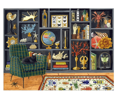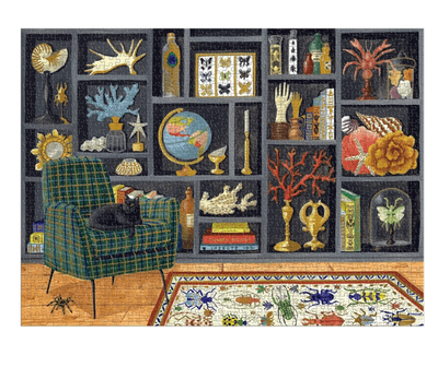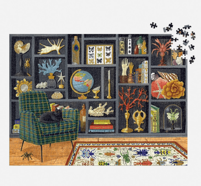 - This sophisticated 1000-piece foil puzzle showcases Mélanie Voituriez's intricate "Eclectic Treasures" artwork, featuring a meticulously rendered collection of curiosities.