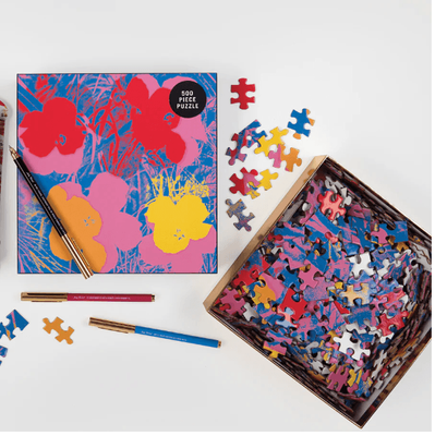 - The Andy Warhol 500 Piece Puzzle from Galison features a print from Warhol’s iconic Flowers series (1970). Galison puzzles are packaged in matte-finish sturdy boxes, perfect for gifting, reuse, and storage.