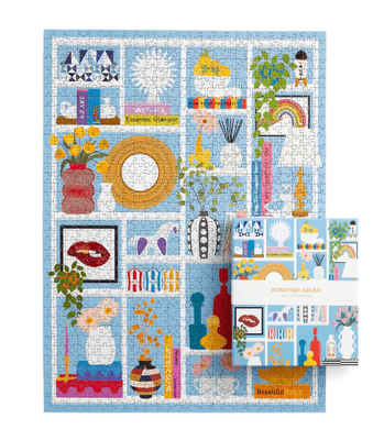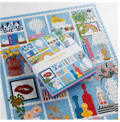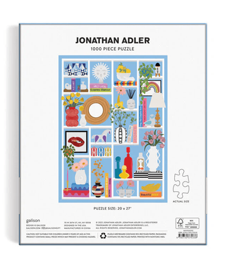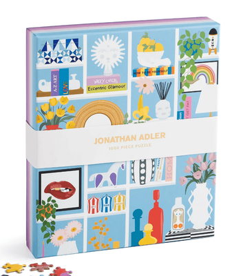 - The Jonathan Adler Shelfie 1000 Piece Puzzle from Galison colorfully highlights the living room shelf of Jonathan Adler and Simon Doonan’s Shelter Island living room bookcase for a chic and challenging puzzling experience.