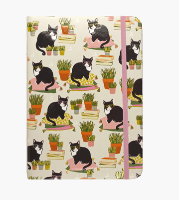 Cool cats on pillows with potted plants ''pop'' with embossed gloss highlights and gold foil on this fanciful feline journal.