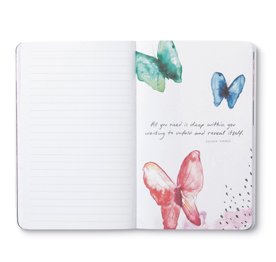 The Write Now Journal line features beautiful designs, modern typography, bold sentiments, striking artwork, and periodic typeset quotations—with plenty of lined pages to capture the day’s thoughts, musing, and prose.Free flowing and soft yet strong, this colorful journal with a butterfly motif inspires reflection, growth, and change.Each blank notebook includes 8 breakout pages with inspiring quotes and uplifting artwork that match the theme