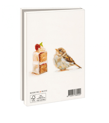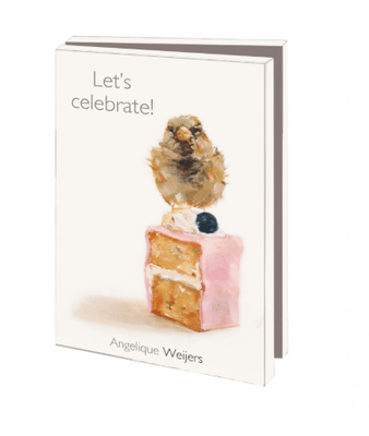 - Celebrate special moments with the "Let's Celebrate!" notecard set by Angelique Weijers, featuring a charming design of a bird perched on a cake.