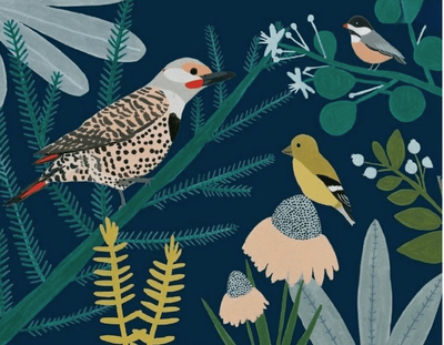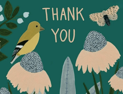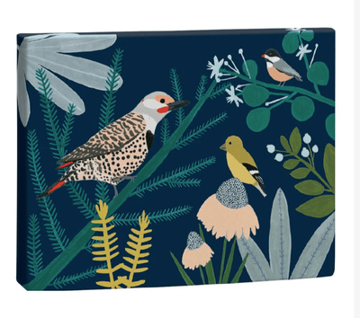 - This card set features a charming design of a birds amidst vibrant flowers, all set against a serene background.