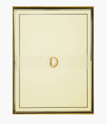- Each crisp stationery sheet features an embossed black border embellished with gloss highlights.