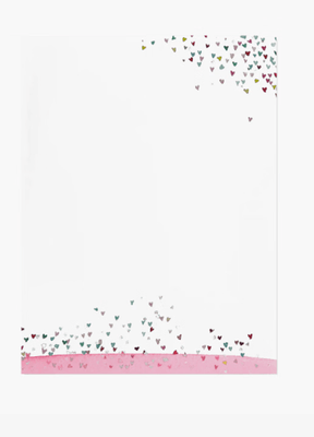 - Dustings of fanciful pastel hearts and a painterly streak of pink accent each crisp stationery sheet.