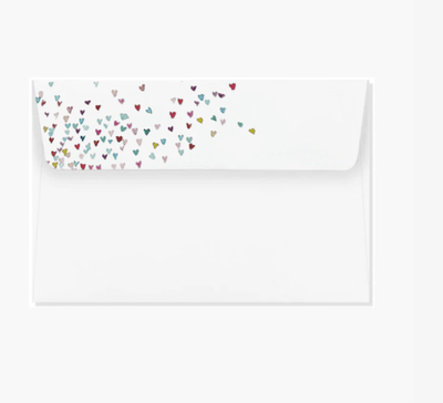 - The hearts design is replicated on the flaps of the accompanying envelopes.