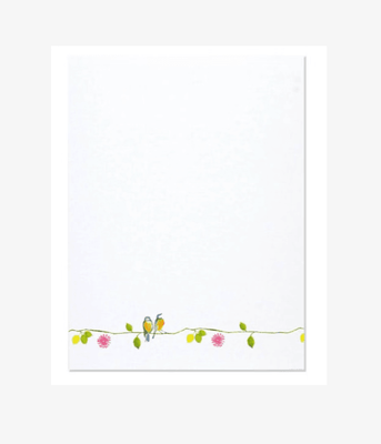 - Each crisp white stationery sheet features our pretty bird pattern at bottom.