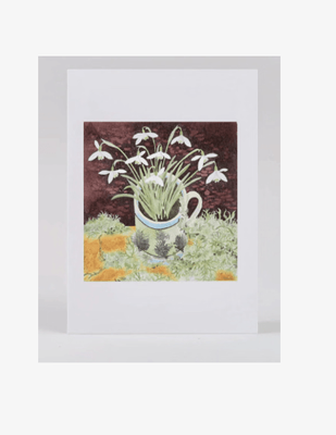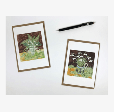 - The images on the cards are from works by Angie Lewin and are titled ‘Snowdrops and Lichen’ and ‘Snowdrops and Ferns’. Both have that bright hopefulness that snowdrops bring.
