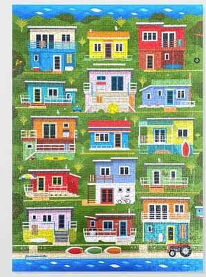 Explore the relaxed charm of coastal Aotearoa with our Artist Series 1000-piece jigsaw puzzle, Cribs & Baches by Glenn Jones.