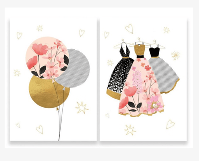 Hammond Gower :Balloons & Dresses 8 Pkt Notecards 2 Designs