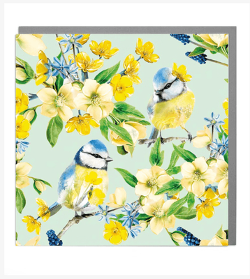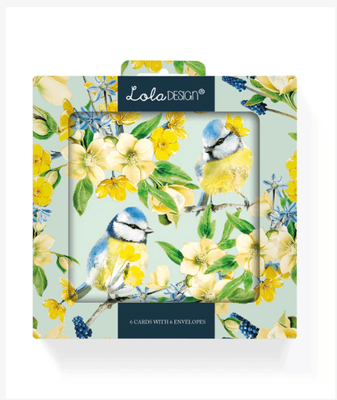 Lola Design Pack of Six Blank Blue Tit Pattern Notecards