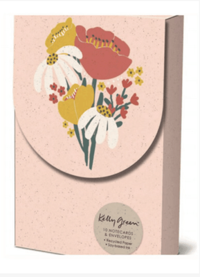 Kelly Green Floral Blank Notecards & Envelopes Recycled Boxed 10 Pkt