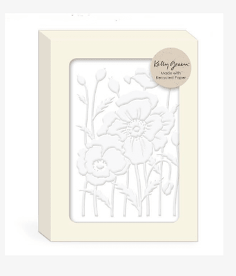 Kelly Green Poppies Embossed 10 Pkt Boxed Notecards