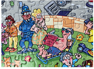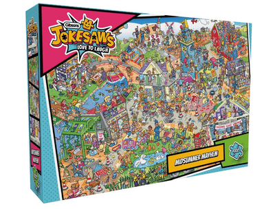 Grab your magnifying glass ready for some Jokesaw chaos in Midsummer Mayhem, a 1000 piece jigsaw by Phil Dobson.