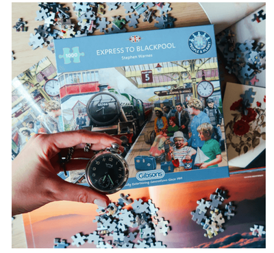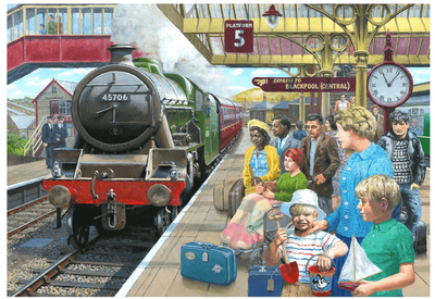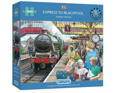 - All aboard the Express to Blackpool! The passengers have packed their buckets and spades and are ready to board the train to the seaside. The jigsaw’s vibrant design captures the excitement of travelling by steam train for a summer holiday adventure.