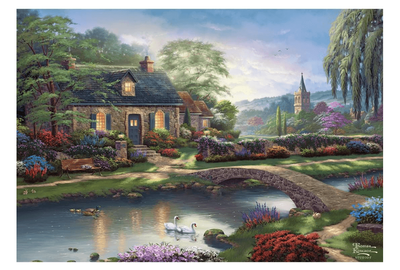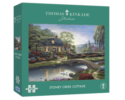 Step into the enchanting world of Stoney Creek Cottage in this 1000 piece jigsaw puzzle from Thomas Kinkade Studios.Escape into a peaceful retreat where the charm of the countryside comes to life.This 1000 piece jigsaw puzzle has been painted by the painter of light, Thomas Kinkade.