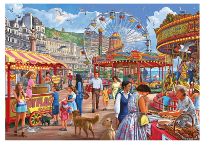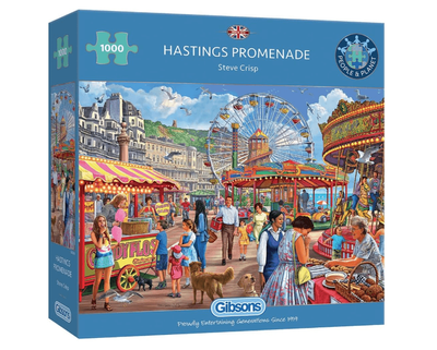 - Bask in the sunshine at Hastings Promenade with this 1000 piece jigsaw by Steve Crisp.A cheerful carousel and a delightful cake sale add a touch of whimsy to this perfect day by the sea.