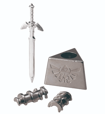 - The Master Sword is connected to the stone pedestal with a central cylindrical piece.