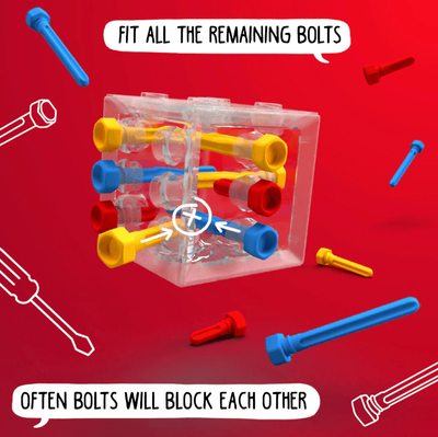 - Show that you are the sharpest tool in the box by solving 80 different challenges. The nuts and bolts of this game are to fit all 13 screws completely into the transparent cube without them blocking each other.